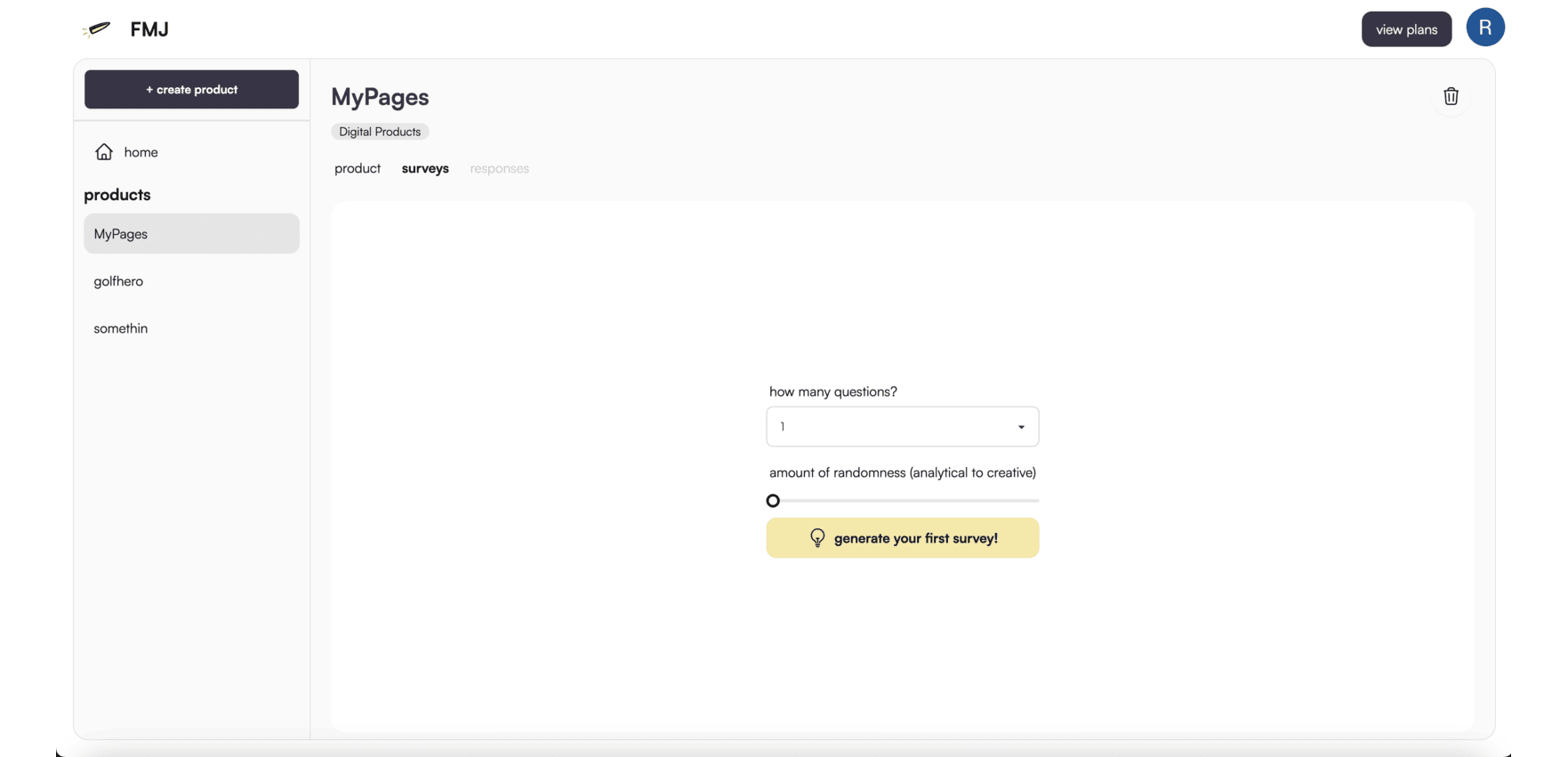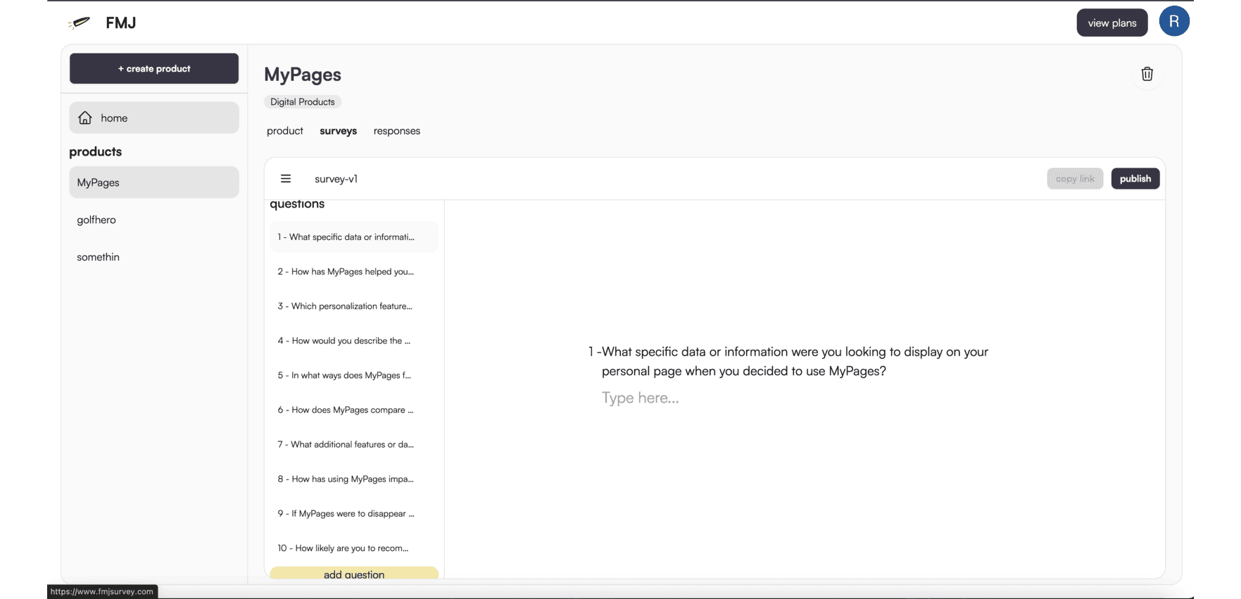 FMJ is an AI-powered survey platform that generates professional, insightful questions and seamlessly manages your surveys and responses in one place. I worked on this project with a friend, and it was the first time working on the frontend.